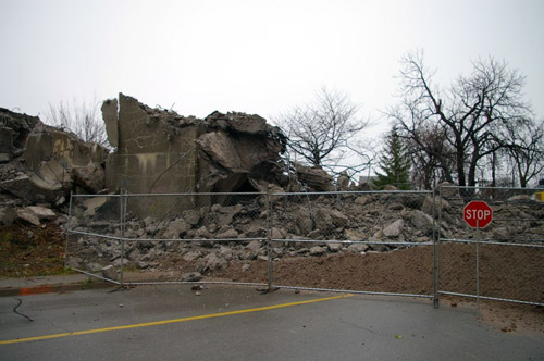 Photo credit: Andrew Panko | RAIL LINE: TR Townline Spur | SECONDARY TRACKAGE & MISC: Bridge Demos | CITY: St. Catharines | ROAD: Oakdale Avenue | MILEAGE: 2.29 | DIRECTION: Looking Southwest | COMMENTS: Formerly... CN Townline Spur NS&T Trackage | PHOTO TAKEN: 2011 |